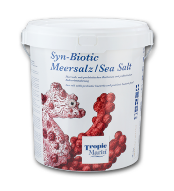 מלח ים Tropic Marin® Syn-Biotic מכיל חיידקים פרוביוטיים לדגים ושרימפס וכן מזון חיידקי פרה-ביוטי מיוחד לקידום זני חיידקים פרוביוטיים וליצירת תנאים דלים בתזונה באקווריום לאלמוגי LPS ו-SPS. השילוב הייחודי של חיידקים פרוביוטיים עם תוספים פרה-ביוטיים משיג אפקט סינרגטי.  מלח ים Syn-Biotic הוא אידיאלי בעת הקמת בריכה חדשה וחידוש מלאי שלה. חיידקים פרוביוטיים הוכחו כמשפרים את בריאותם ורווחתם של דגים וסרטנים ומסייעים להתגבר על מצבי לחץ ומחלות. להתאקלמות מיטבית, יש להשתמש   במי אקווריום עם מלח ים Syn-Biotic לפני הכנסת בעלי חיים חדשים.‏התוספים הפרה-ביוטיים הכלולים תומכים בשילוב של חנקות ופוספטים במסת חיידקים, ובזכות תנאים דלים אלו בתזונה, מבטיחים את הצבעים העזים של אלמוגי האבן. על מנת להתאים את בעלי החיים באופן בר-קיימא לתנאי האקווריום ולייצב את המיקרוביולוגיה, אנו ממליצים על המשך השימוש במלח ים Syn-Biotic . כל החלפת מים ממלאת אוטומטית את החיידקים הפרוביוטיים הדרושים למניעה ארוכת טווח.‏