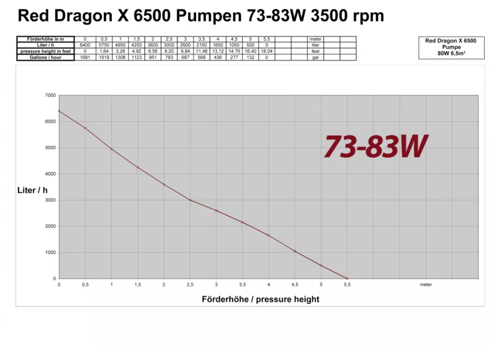 Red Dragon ® X משאבת 85 וואט 6.5 m³