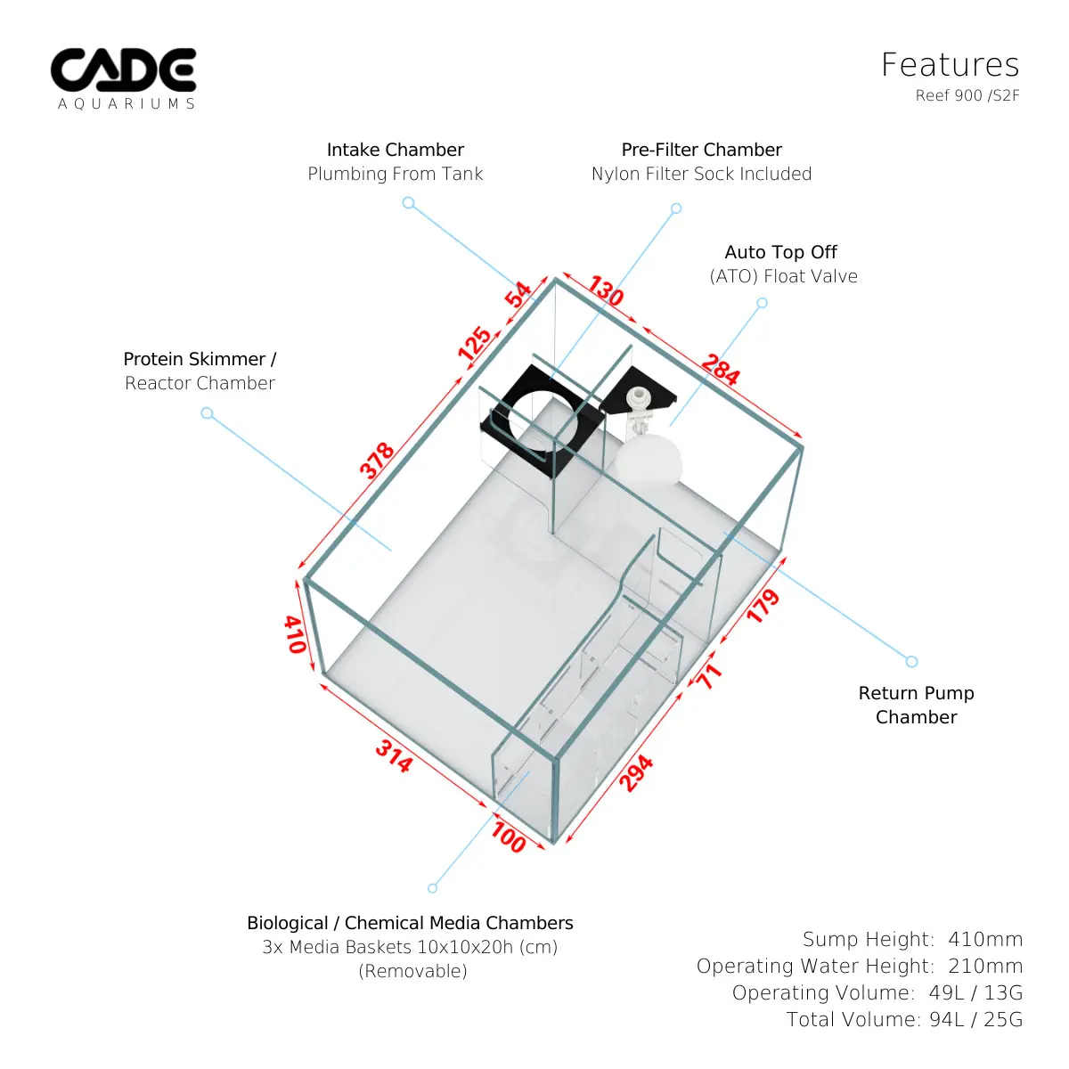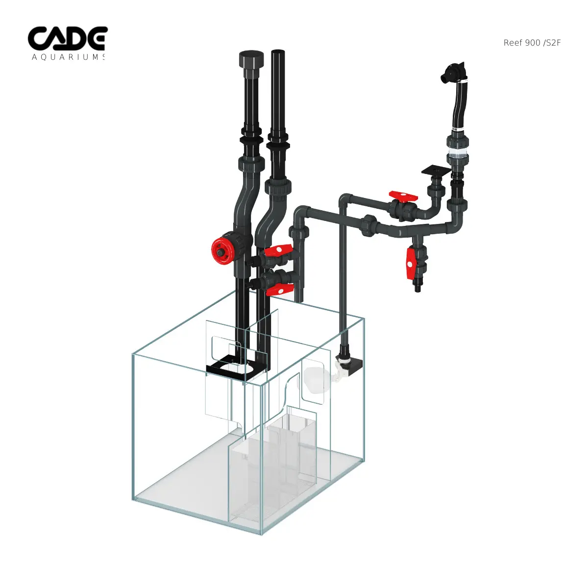 אקווריומי Cade ידועים בקווים הנקיים, השקיפות המדהימה, תכנון חכם, מיכל אגירה גדול, סאמפ בתכנון קפדני.